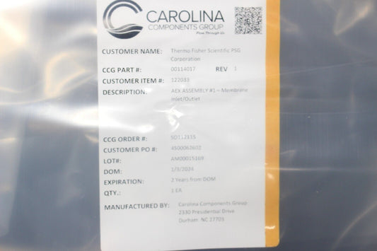 AEX Assembly #1 Membrane Inlet/Outlet 00114017 Carolina Components EXP. 1/3/26