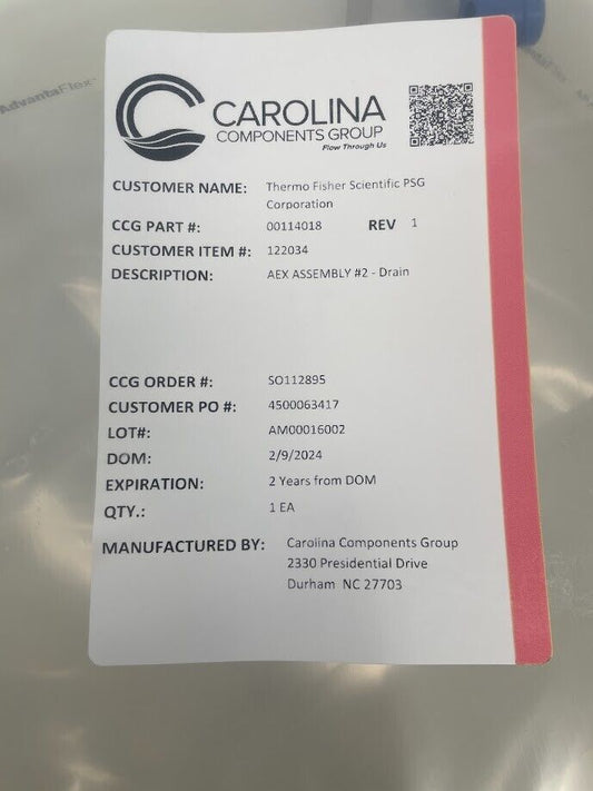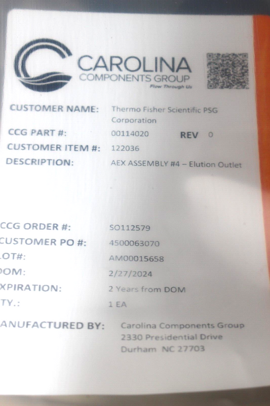 Carolina Components Group AEX Assy #4 Elution Outlet 0114020 122036 EXP. 2/26
