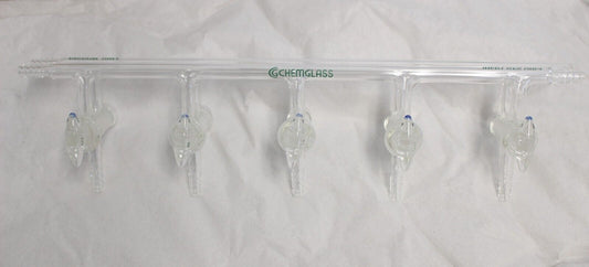 Chemglass 5-Port, Vacuum Manifold Inert Gas, Glass Stopcocks CG-4441-03
